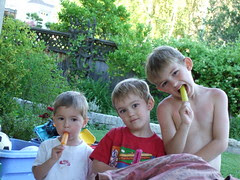 Ages 6, 3 and 2, the play is all about vehicles and chasing, running in circles and sweets!